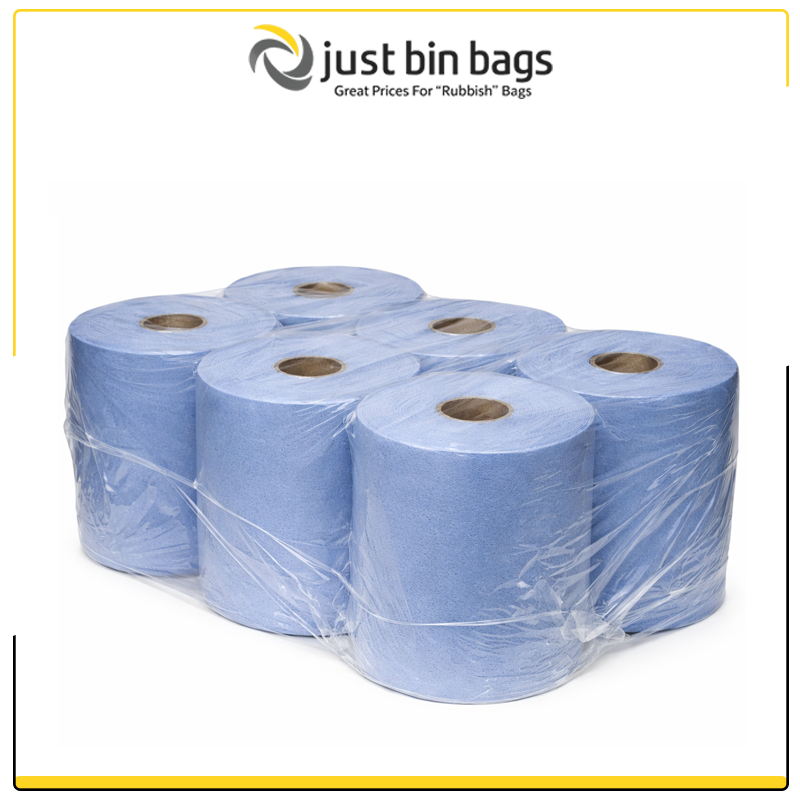 150 metre. 2 ply blue centre feed roll – 6 pack. Shipping included.